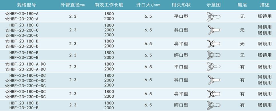 产品用途:在医疗机构中与高频手术设备配合使用,用于在消化道内窥镜下进行活检取样